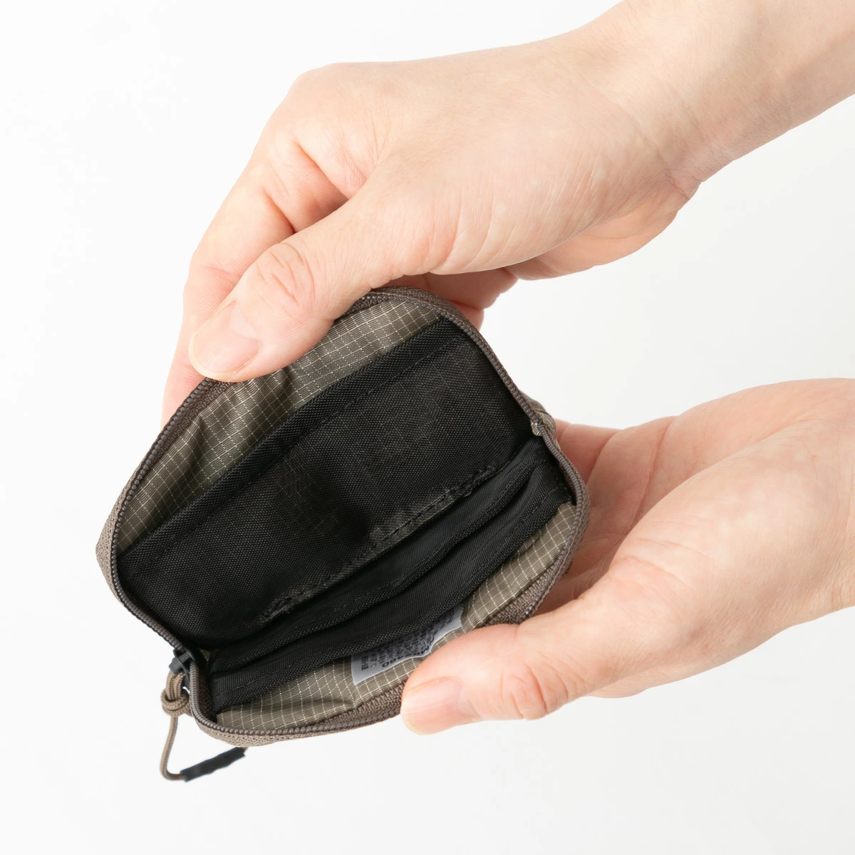 材質使用100D再生ROBIC防撕裂尼龍,輕量卻耐磨,重量只有約28g,日常通勤或旅行使用都很安心。背面附有小環扣,可搭配登山扣或鑰匙圈使用,戶外感與機能感一次到位。